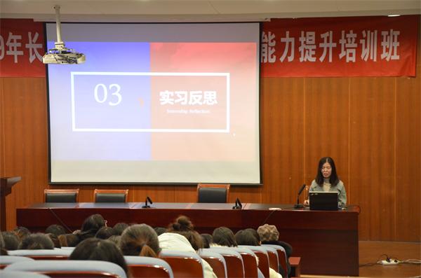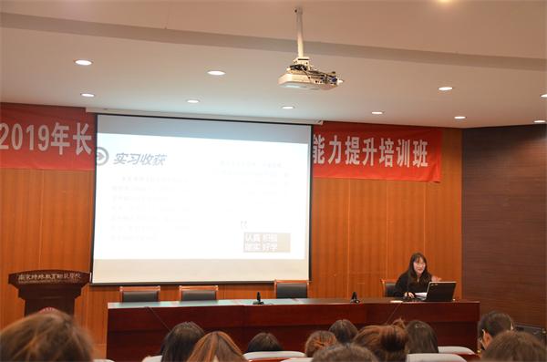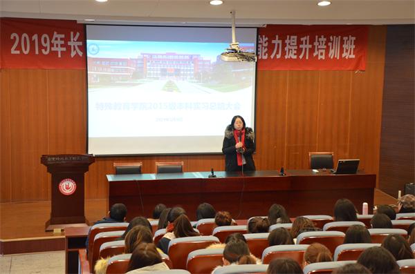 接下来,魏婷婷和丁志辉两位老师代表特教学院实习指导老师发言。魏婷婷老师在发言伊始,就抛出三个问题“实习前,我想得到什么?”“实习中,我做了什么?”“实习后,我还要做些什么?”,通过问题,引发大家思考,进而引导大家明确目标、寻找差距、制定计划并付诸实践。丁志辉老师肯定了15级本科实习生在教育实习过程中的表现,并对全体实习生提出更进一步的要求,希望大家在今后的学习中要继续加强理论学习,夯实理论基础,强化教师技能训练,以理论为基,以实践为本。