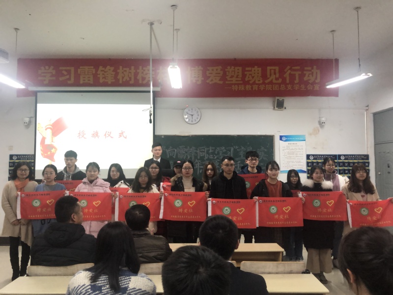 会议接着由青年志愿者协会宣布学院“向雷锋同志学习”主题实践活动方案,对学雷锋志愿服务活动安排进行了具体布置,学生干部代表宣读了“学习雷锋树榜样,博爱塑魂见行动”倡议书。随后,学院党总支王娟副书记为全院各班团支部志愿者小分队授旗,章小军书记为永利yl23411集团“博爱社”志愿服务大队授旗。