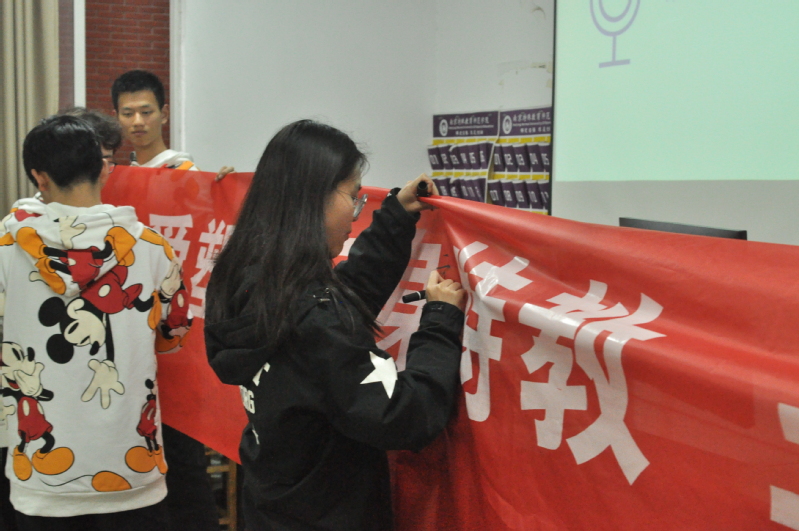 会议伊始,以视频展播的方式回顾了上一届运动会的精彩瞬间和辉煌成绩,并观看了本届运动会成员在雨打日晒中坚持训练的备战场景。接着,主持人就本届运动会期间的各项事宜及安排作介绍。运动员、裁判员、志愿者代表分别上台发言。他们表示要尽心尽力,努力做好本职工作,保障运动会各项工作的有序、高效运行。接着,学生干部代表顾闯宣读倡议书,运动员代表朱一杰、志愿者代表李雪颖都做了表态性发言,并带领全体运动员一同宣誓,他们用慷慨激昂的语言表达了他们勇于拼搏突破自我的精神。随后,与会老师和全体运动员在横幅上签名立志,为学院加油,预祝在校运会上取得优异成绩,并号召大家积极参与,团结奋进,锐意进取,为特教学院争光“博爱塑魂,立身特教;三博健儿,勇创佳绩”的口号。