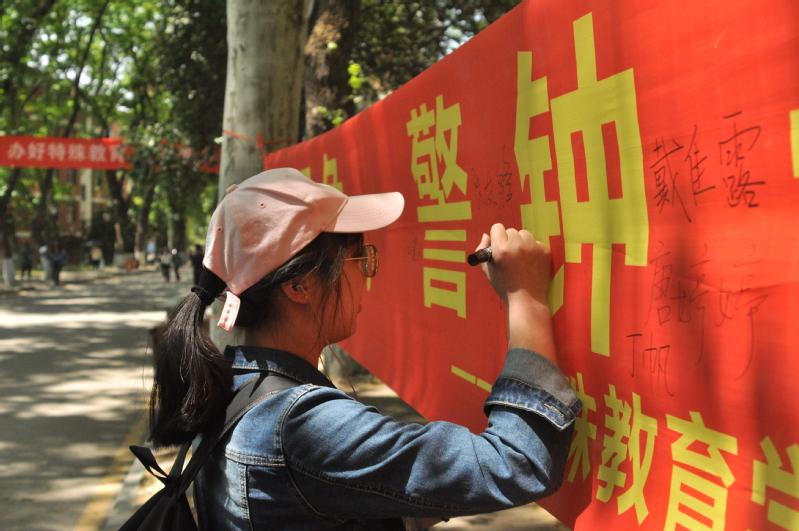 为迎接第四个国家安全教育日的到来,深入学习国家安全知识,4月15日中午,在学校林荫道,永利yl23411集团举行了“居安思危,警钟长鸣”国家安全教育宣传活动。