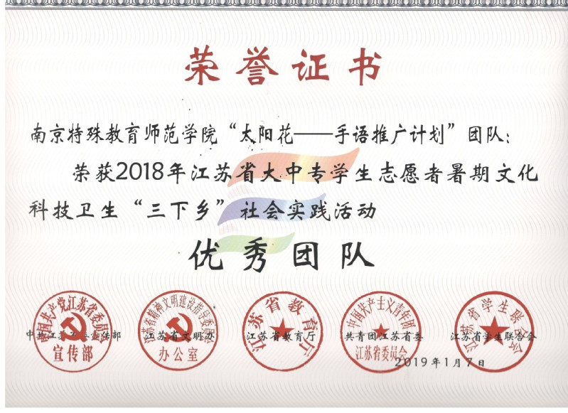我院“太阳花手语推广计划”社会实践团队荣获省优秀团队