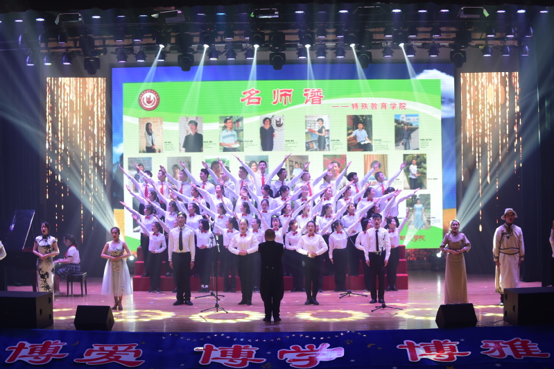 展示汇报分为“塑博爱之魂”、“兴博学之风”和“做博雅之师”三个篇章,汇报形式多样,有礼仪师德微课、手语歌舞剧、“三字一画”、“模拟授课”、课本剧、主题演讲、经典诵读、大合唱等异彩纷呈。其中,《特殊儿童干预教师》展示了特殊教育师范生追寻为特殊教育和残疾人事业奉献的职业规划理想之路;《模拟授课》环节全面展示了师范生教学基本功;课本剧《你是照进我生命的阳光》触动心弦、感人至深,展现了我校特殊师范教育的探索之路;《特教工作者之歌》唱出了师生坚守特教使命的坚定信念。整场汇报会较好地诠释了“博爱博学博雅”三博教育的深刻内涵。
