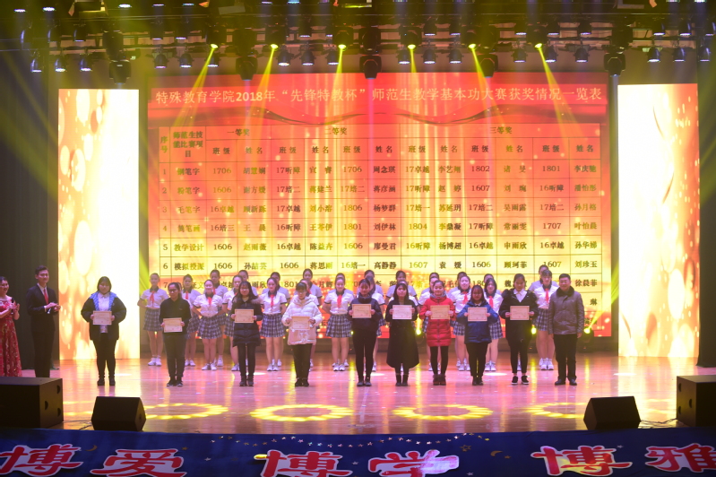 展示汇报结束后,俞锋书记、王立新副书记和陈克军副校长分别为“先锋特教杯”师范生教学基本功大赛系列比赛一、二、三等奖获得者颁奖。
