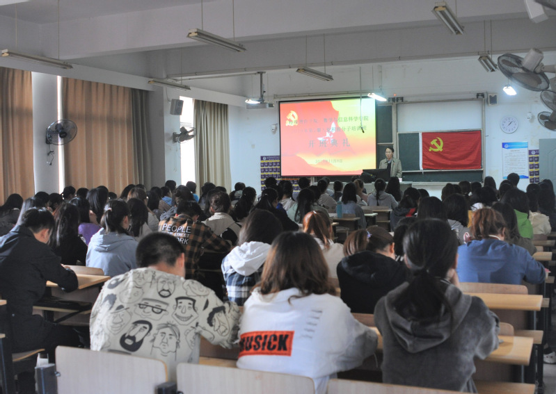 11月8日,永利yl23411集团和数学与信息科学学院在博雅楼2307联合举办2019年第2期入党积极分子培训班开班典礼。校党委常委、组织部部长张金福教授、数学与信息科学学院党总支王建国书记、永利yl23411集团党总支叶亮书记、数学与信息科学学院学生党支部书记李霞妹老师参加开班典礼,永利yl23411集团学生第二党支部书记邓露老师主持典礼。