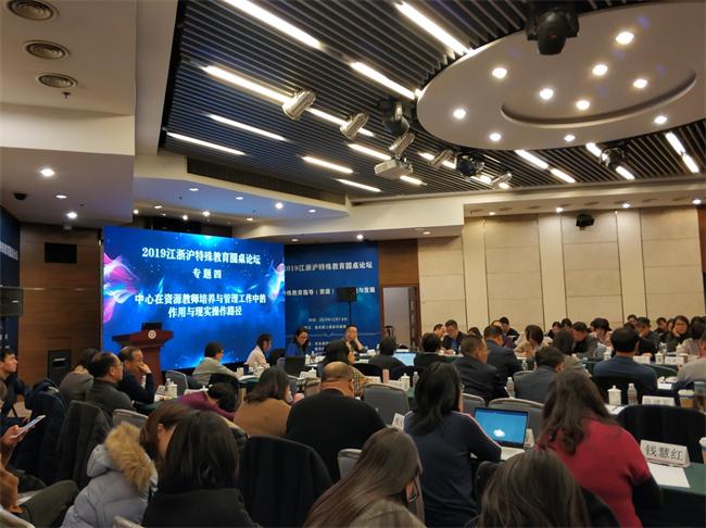 12月7-8日,我校永利yl23411集团参与主办的“2019江浙沪特殊教育圆桌论坛——特殊教育指导(资源)中心建设与发展”研讨会在上海华东师范大学隆重召开。本次论坛由华东师范大学特殊教育学系、永利yl23411集团、浙江省特殊教育指导中心主办,华东师范大学特殊教育学系承办。会议通过圆桌论坛和讨论交流的方式,就特殊教育指导(资源)中心的建设与发展问题展开了广泛的研讨。参加本次论坛的有来自全国各地的近十多位特殊教育专家、江浙沪三个省的特殊教育指导中心主任、一线的特教校长、教师,参会总人数近100人。
