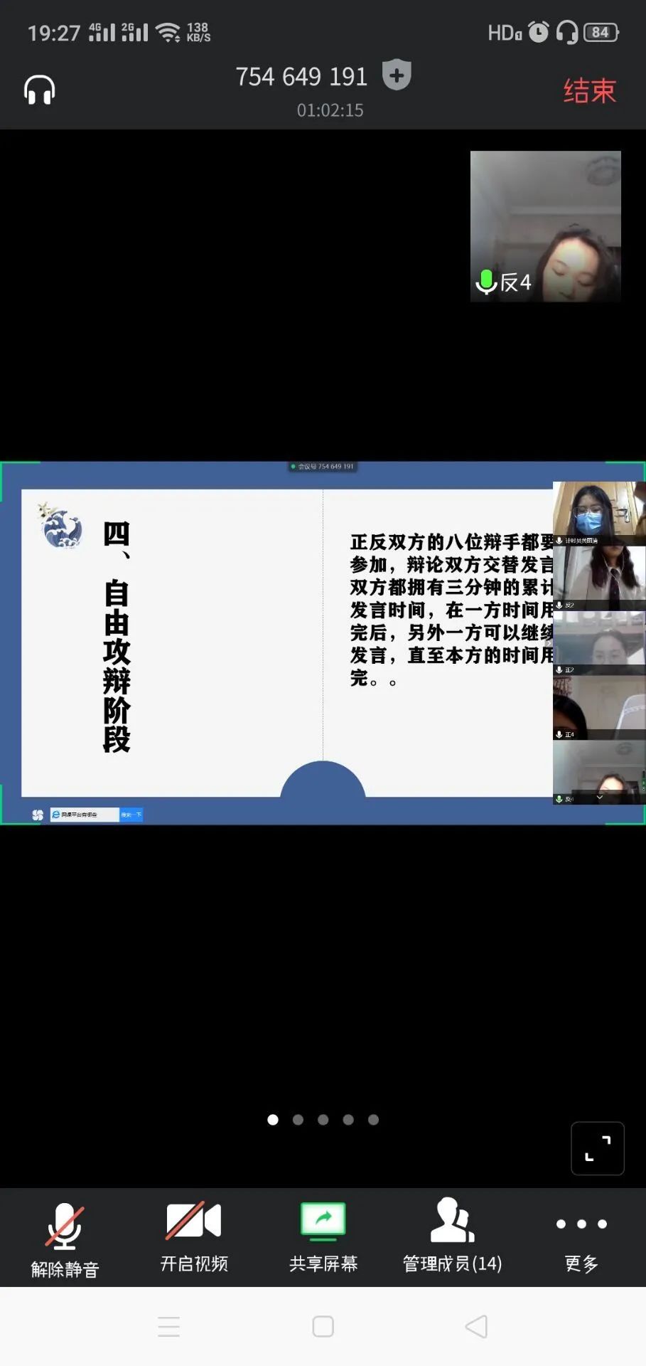 初赛正在自由攻辩的选手们