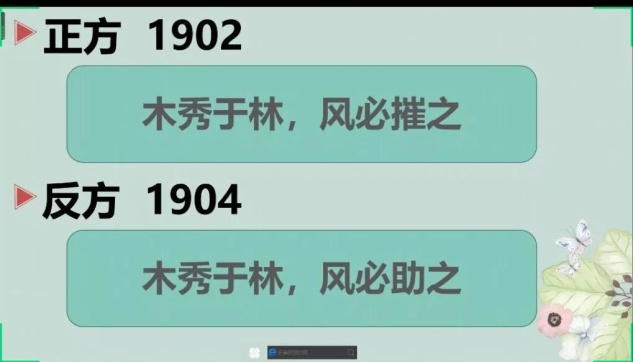 本届比赛共有七个辩题,围绕“顺时代之喜,思青年之责”的主题展开。正反双方通过立论、驳立论、质辩、自由辩论和总结陈词几个环节进行激烈辩论。在初赛阶段,引入了有关“新兴事物”和“为人处事”两方面的话题,共有四个小组同时展开对决。双方选手展现了优秀的表达能力,从他们身上看到了作为当代大学生对于新时代社会现象的独特见解;在复赛阶段,辩题内容重在考验辩手对于不同人生态度的认识,正方从积极人生观的角度阐明了“人生贵在抒胸臆”的观点,而反方就公共秩序和道德规范强调了“人生贵在不逾矩”的重要性,双方精彩的辩论引发了我们对人生态度的思考;在最扣人心弦的决赛阶段,双方就“木秀于林,风必摧之还是助之”展开辩论,探讨了小环境和社会环境对于竞争的影响,激烈的质辩将比赛推向高潮,展现了双方辩手对当前社会中个人发展的深刻思考和真知灼见。