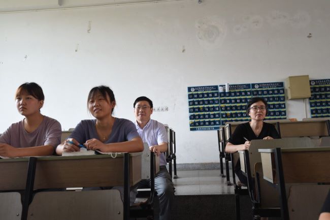 临上课前,学委按点名册逐一点名,检查出勤情况。上课铃声响起,同学们精神饱满,上课认真听讲。任课教师丁颖博士以饱满的工作热情投入《教育研究方法》的课堂教学中,备课充分,上课充满激情、感染力强。同学们课堂上积极发言,师生互动较多。课堂秩序良好,气氛活跃,教室环境整洁干净。课后,陈校长、我院谈秀菁院长和任课教师进行了亲切交流,充分肯定特教学院师生新学期良好的精神面貌。