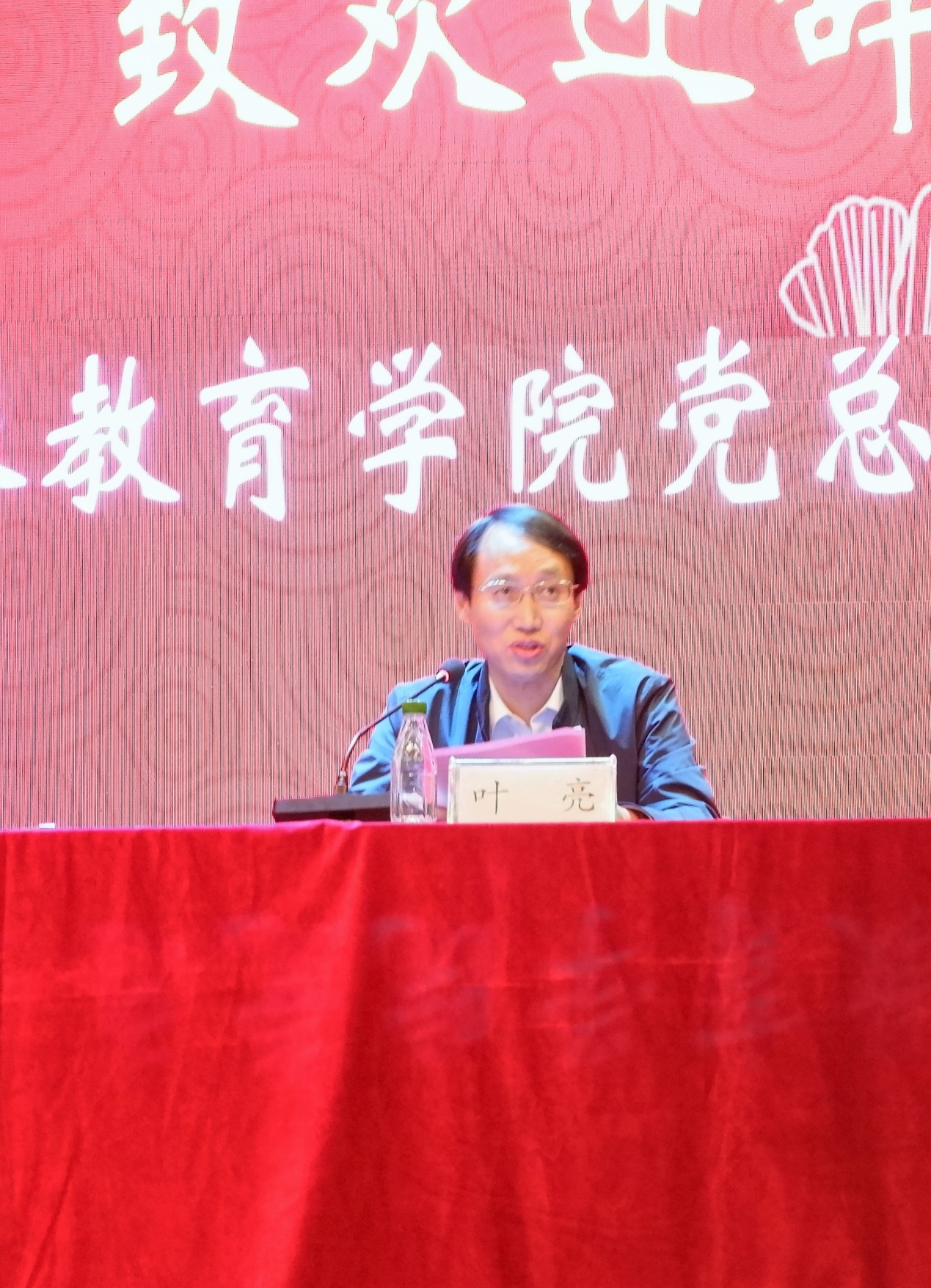 本次会议首先是新生欢迎会,由党总支书记叶亮老师代表学院致欢迎辞。叶书记向新生同学们介绍了学校和学院的办学历史、发展情况和办学特色,希望同学们认真规划好每个人的大学生涯,努力做到博爱塑魂、博学善思、博采众长,珍惜青春,不负韶华,自觉锻炼,将来成为一名有理想信念、有道德情操、有扎实学识、有仁爱之心的四有好老师和对社会作出积极贡献的优秀人才。