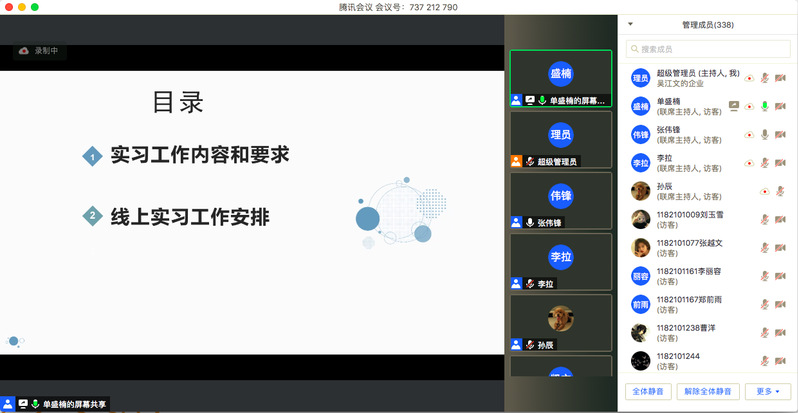学院副院长张伟锋补充学院线上校内实习安排的要求和建议,总结实习生须知的要点。张院长从“学院实习工作还要做什么?”、“实习生要和哪些老师联系?”、“实习生要交哪些作业?”、“实习生的安全和纪律”、以及“对实习生收获的期望”五个方面强调了校外实习工作需落实的要点。最后,张院长在线答疑,耐心解答了实习生们提出的一些共性问题,包括如何取走个人冬季衣物、实习手册内容的填写、实习简报的规范制作和实习前的返校时间等。