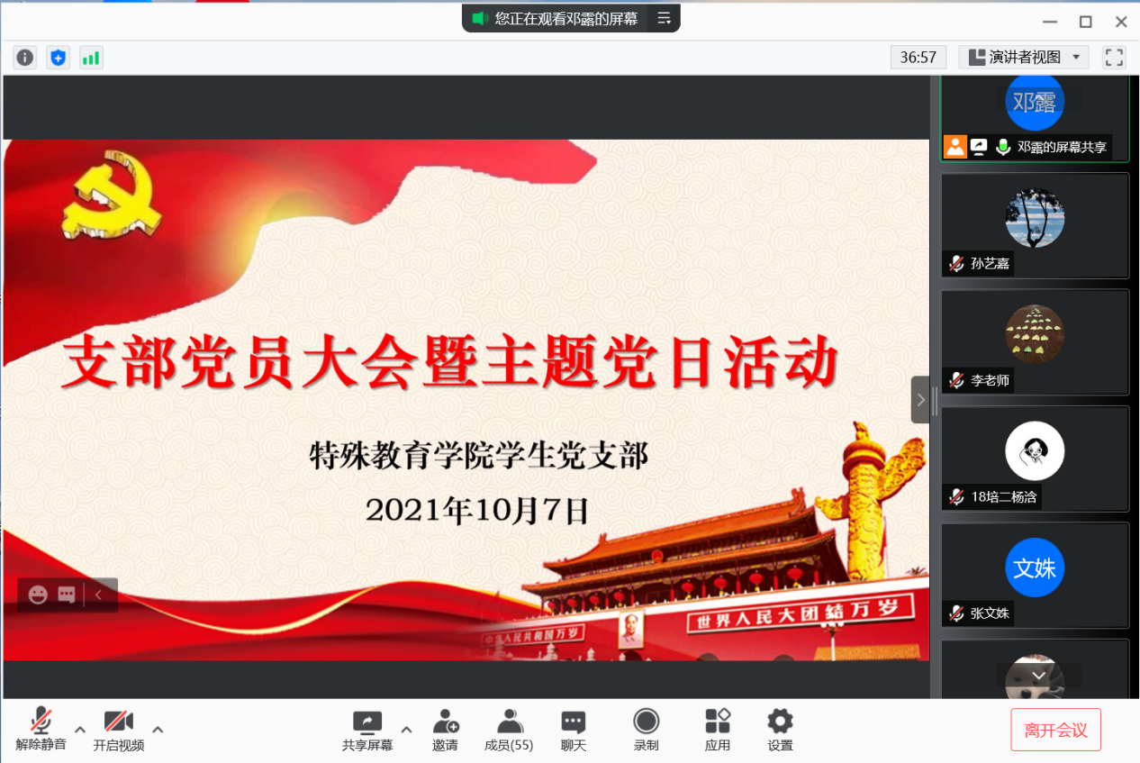 10月7日,永利yl23411集团学生党支部召开线上党员大会暨主题党日活动,会议由党支部书记邓露老师主持,支部全体师生党员参加。