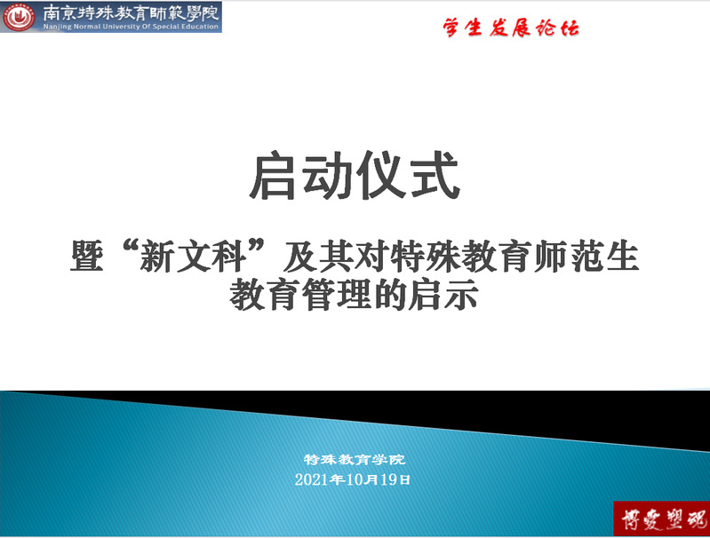 为加强辅导员队伍建设与服务学生全面发展的需求,形成研讨式的工作交流平台,永利yl23411集团于10月19日上午在博雅楼2401举办了学生发展论坛启动仪式暨 “新文科”及其对特殊教育师范生教育管理的启示的研讨活动,学院党总支书记叶亮、副书记李鹏、全体辅导员与班主任代表参会,会议由李鹏主持。