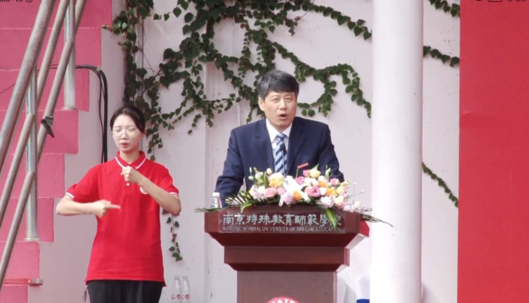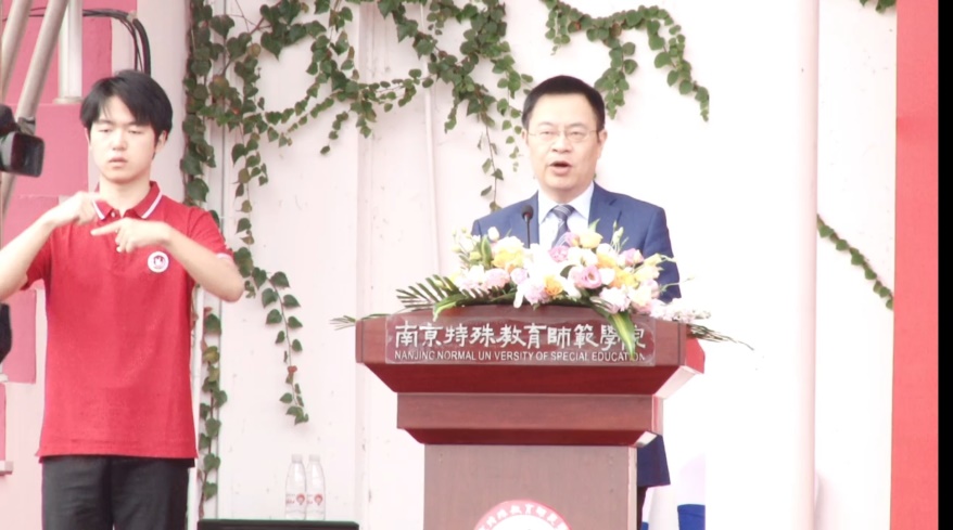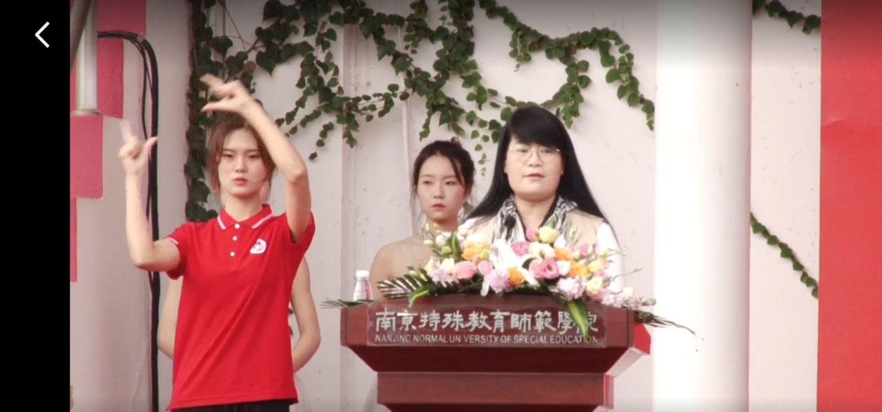 手语翻译专业2008班王浩昆:学校领导们热情洋溢的发言,让我看到了南京特师广阔的胸襟和进取的决心,建设中国特殊教育师范大学的宏图大志和美好畅想更加激发了我们学习的热情和奋斗的积极性。这次翻译,虽然圆满完成了任务,但是也让我意识到自己专业能力的不足,看到了自己与优秀学姐学长们之间的差距。知耻而后勇,知不足而后进,我要向优秀的老师和同学们学习,以他们为榜样,不断增强专业本领。今年是建党100周年,作为新时代的青年和特教人,我更要努力学习专业知识,不断强化专业技能,跟随党的新征程不断前进,为党和国家的特教事业贡献青春力量。