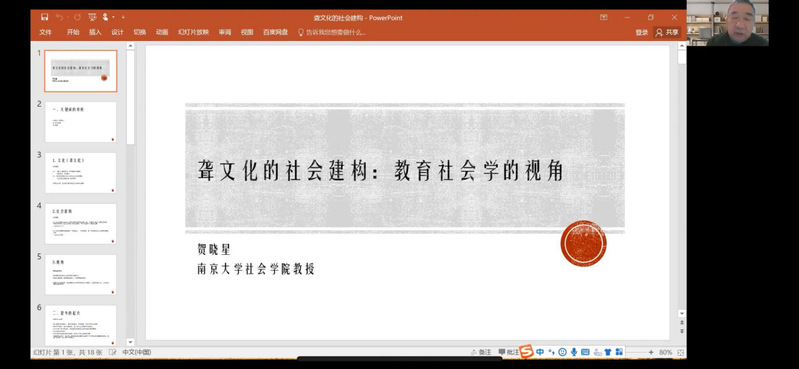 手语翻译系邀请了南京大学社会学院社会学系贺晓星教授,他聋文化的社会建构:教育社会学的视角为主题展开讲座,从教育社会学角度重新解读了聋人群体,强调从多元化角度认识聋人群体、聋人语言和聋人文化,为师生们深刻理解聋人以新的启迪。