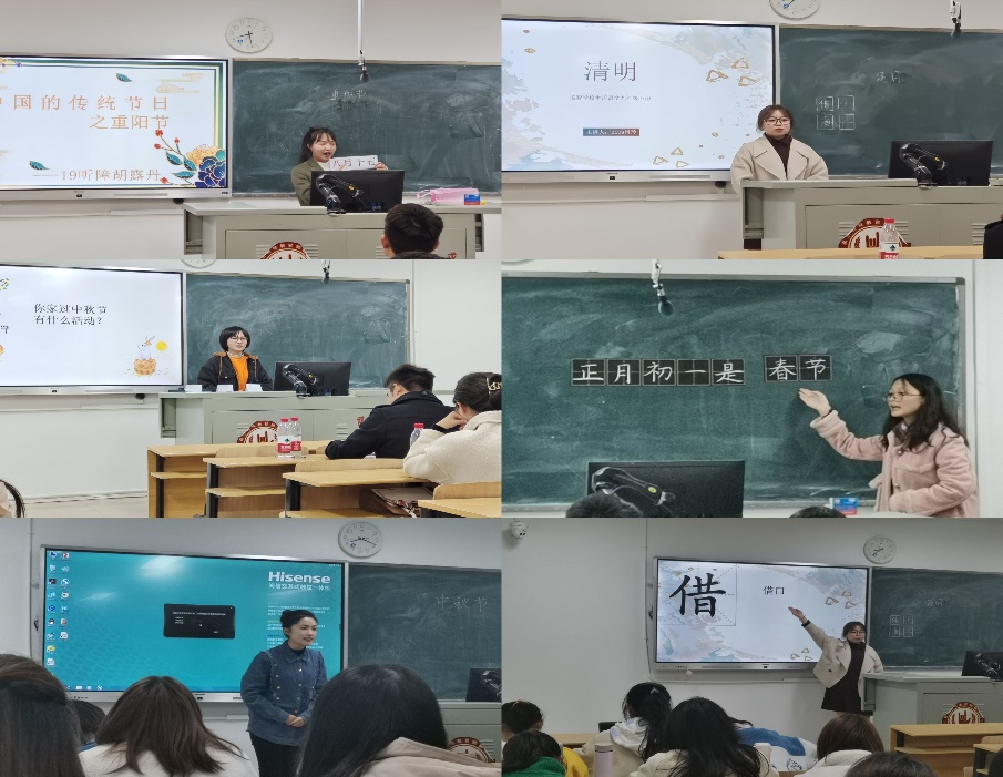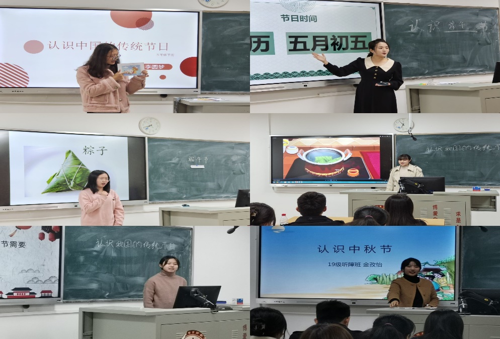 比赛正式开始,选手们站在三尺讲台之上,仪态端正大方、语言平易晓畅,在实践课堂中从容不迫、随机应变。选手们制作的课件丰富有趣、灵活生动,将ppt、视频等多种新媒体技术与传统板书相结合,采用趣味游戏、师生互动等方式活跃课堂气氛。在课堂展示中,选手们仿佛置身培智学校课堂,为台下渴望知识的孩子们声情并茂地介绍我国传统节日。