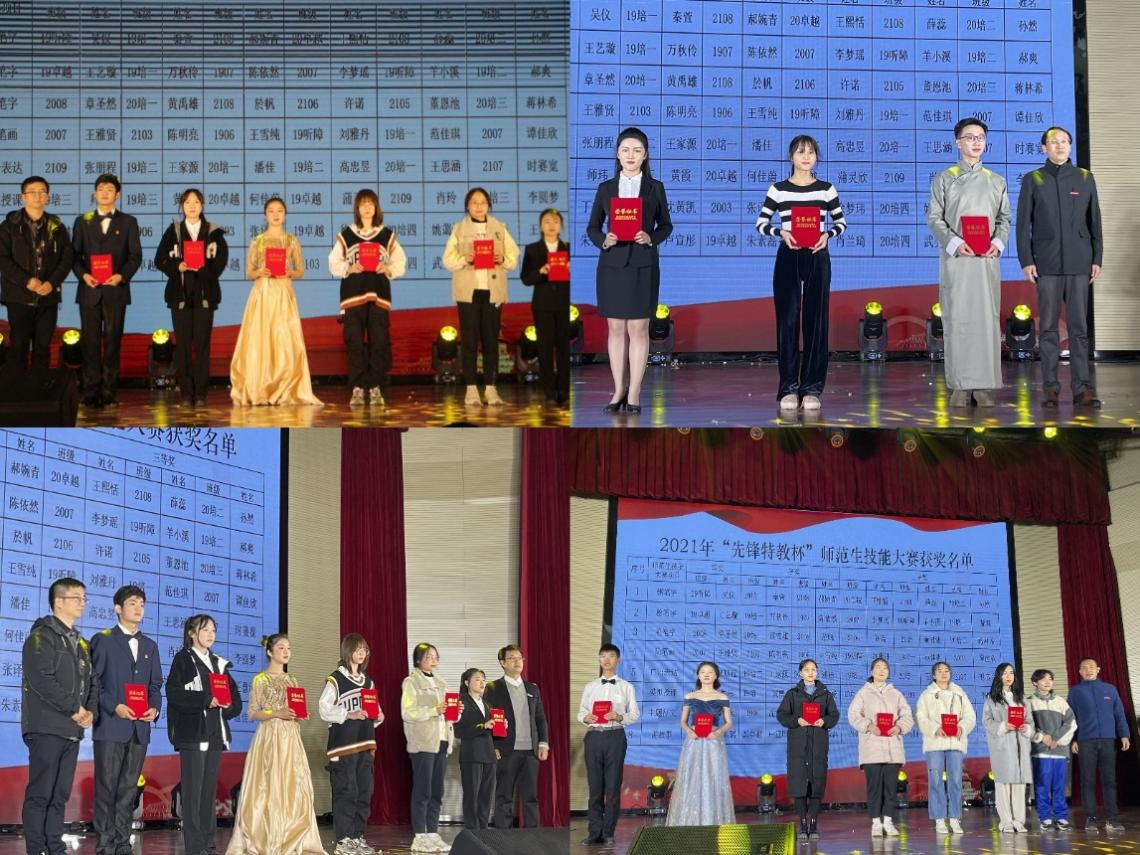 汇报结束后,由永利yl23411集团党总支书记叶亮老师、副院长李拉老师、党总支副书记李鹏老师、副院长张伟峰老师分别向“先锋特教杯”师范生技能大赛获奖同学颁奖并合影留念。