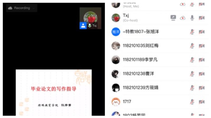 在两个小时的讲座中,谈教授结合自己丰富的研究经历,以及多年对特殊教育一线教师课题研究的指导经验,通过大量的研究实例,从毕业论文的选题与写作两个模块进行了深入浅出、细致详尽的讲解。