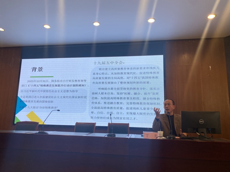 3月9日下午,永利yl23411集团特邀中国教育学会特殊教育分会副理事长、江苏省特殊教育专业委员会理事长丁勇研究员做题为“推进特殊教育高质量发展的行动纲领”的专题学术讲座,对国务院办公厅转发的《“十四五”特殊教育发展提升行动计划》(以下简称《行动计划》)进行了深度解读。