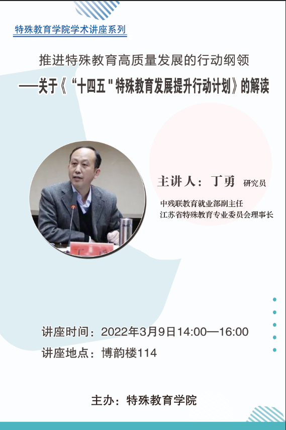 学术讲座——推进特殊教育高质量发展的行动纲领 一关于《“十四五"特殊教育发展提升行动计划》的解读