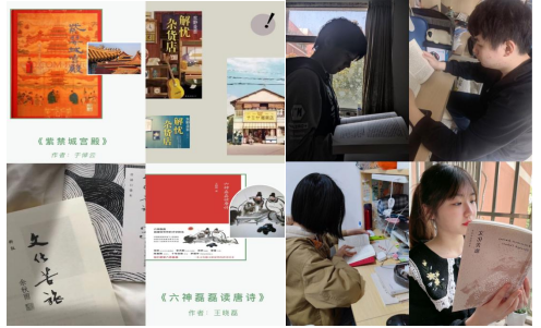 阅读余秋雨的《文化苦旅》就好比一场没有目的地的远行,同学们运用视频的形式将这本书分享给每一位“行者”。文人的魅力,竟能把偌大一个世界的生僻角落,变成人人心中的故乡。“世间好物不坚牢,彩云易散琉璃脆”,这是杨绛老师写在《我们仨》最后的文字。《月亮与六便士》虽然是有一定虚构的小说,但与我们每个人都息息相关,月亮即理想,六便士即现实,如何在理想与现实的冲击下,做出千万个不同的选择,是值得我们每个人耐心品味的。《紫禁城宫殿》《解忧杂货店》《文化苦旅》《六神磊磊读唐诗》……每一本书中都闪耀着人类优秀文化结晶的光芒,在同心抗疫期间让同学们汲取向善向上、积极乐观的精神力量。