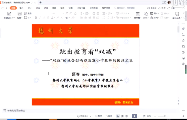 为了让同学们更好地了解国家的“双减”政策,以及准教师如何提前培养自己的专业能力和素养,以适应“双减”政策下教书育人的任务,2022年4月27日永利yl23411集团小学教育系邀请了南京师范大学教育学博士,扬州大学教育科学学院教授、硕士生导师、小学教育专业学位硕士点负责人、附属邗江实验学校副校长葛春老师进行线上讲座,讲座主题为《跳出教育看“双减”——“双减”的社会影响以及教师的因应之策》。