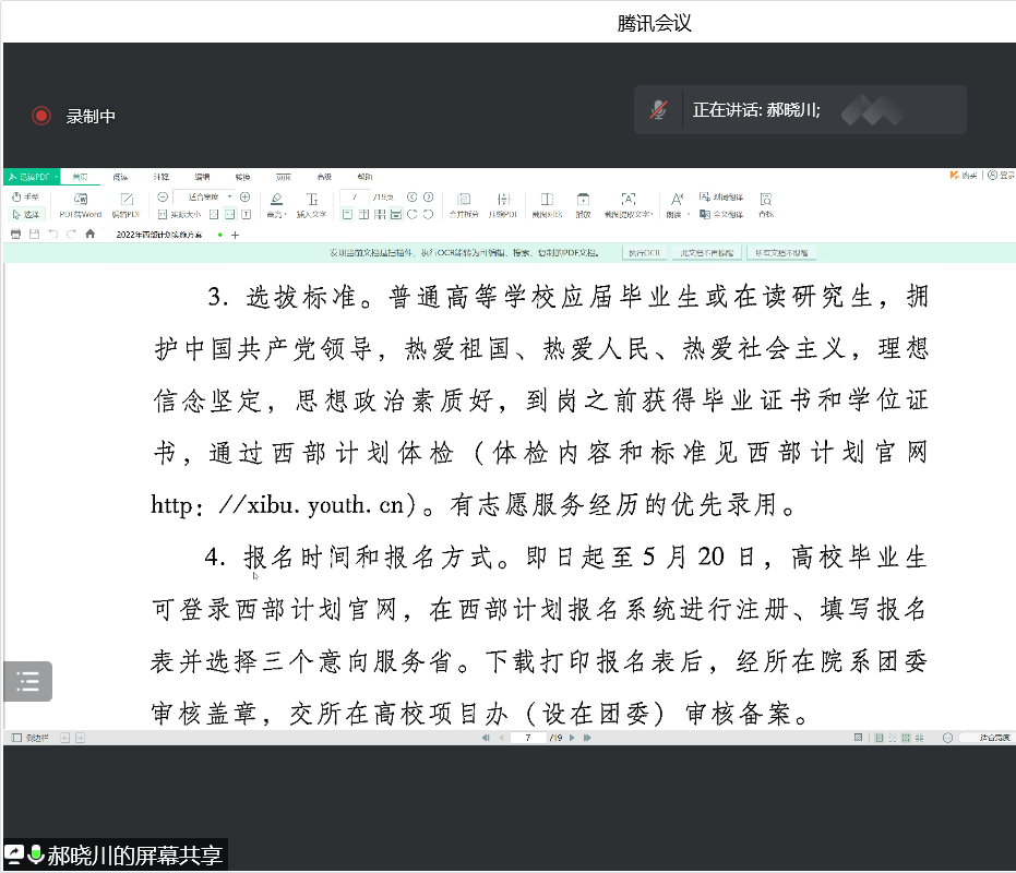 为帮助学生对西部计划、江苏大学生志愿服务计划有更清晰的认知,引导和鼓励我校学生到基层工作,在青年中弘扬“奉献、有爱、互助、进步”的志愿精神,永利yl23411集团于4月28日下午通过腾讯会议召开西部计划、江苏大学生志愿服务计划专题宣讲会,会议邀请校团委副书记郝晓川老师宣讲,我院党总支书记叶亮、副书记李鹏参加,会议由18级辅导员王赫煊老师主持。