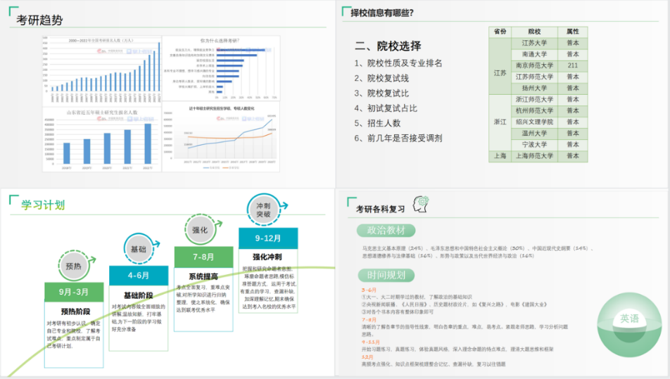 会议第一阶段,考研辅导专家浦老师首先对就业形势和考研趋势进行了阐述,深入讲解了专业选择、院校分析等内容,其次重点介绍了江浙沪地区院校报名及录取情况,与同学们强调了考研复习的时间规划和备考技巧,让同学们明确考研的意义,增强考研的信心和决心,最后针对同学们的问题进行全面细致地解答。同学们纷纷表示受益良多,对考研有了更清晰的认知。