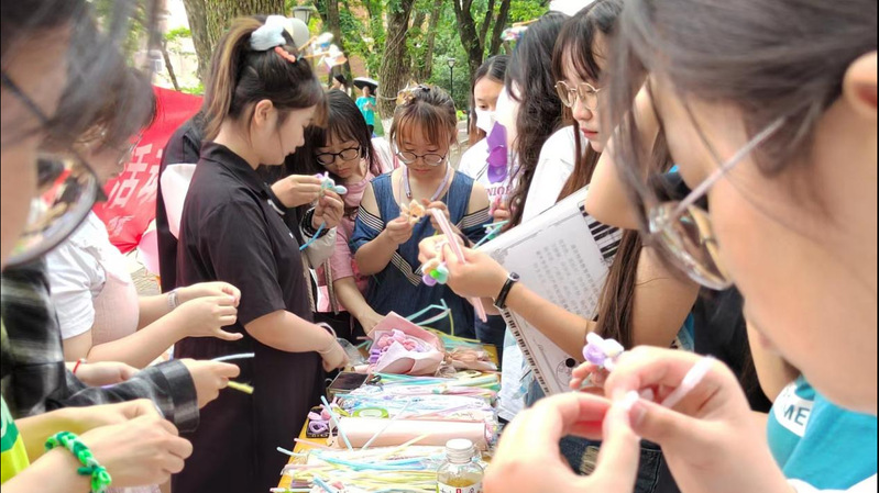 本次活动分为线上和线下活动。线上活动主要有“七天美好事物打卡”、“口罩绘暖阳”、“凝心聚爱vlog”活动。线下活动共有“对自己say hi”、“告白风车”、“扭扭乐”、“世界和我爱着你”四个部分。爱自己才是终身浪漫的开始。在“对自己say hi”活动中同学们写下自己不完美的地方与自己和解。在“告白风车”活动,同学们将告白的话写在风车上,让爱意随风飘扬。此次活动使同学们体验自身存在价值,提高自信心,积极乐观的面对学习生活。在与心灵对话的同时,同学们也通过“扭扭乐”活动和“世界和我爱着你”活动释放内心压力,让疲惫的心小憩。一根根扭扭棒在手下生花,创作出独属于自己的小创意。“爆破声中,压力除”气球被戳破的同时,压力也随之消散。