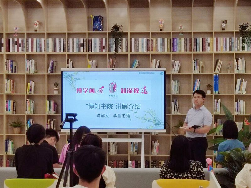 最后,李鹏老师对读书报告会进行了总结,鼓励大家要带着疑问读,带着问题读,带着感悟读,把书中的思想精华内化于心,并详细介绍了“博知书院”,提出要打造读书、科研、创新创业三位一体的“博知书院”,使其成为经典研读、教育实践探索、交流分享的平台,鼓励大家在阅读中要拿出“三力”,拿出恒力,投入精力,增强魅力,博知以行。