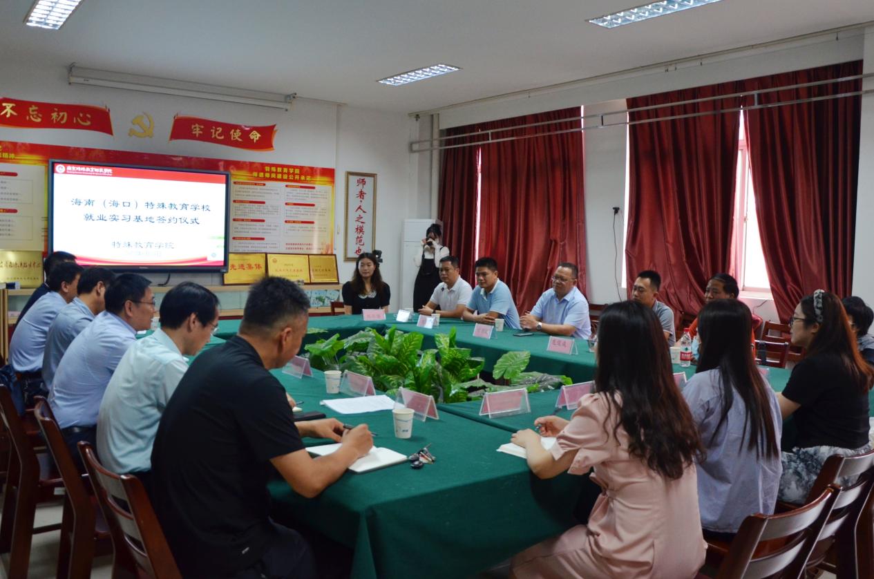 陈校长首先对甘校长一行表示热烈欢迎,并对我校发展历史、专业发展、师资培养、毕业生就业等方面情况作了简要介绍,并指出随着国家对特殊教育的大力支持,《“十四五”特殊教育发展提升行动计划》的制定颁布,我校不断进行特教师资培养发展改革,着力提升毕业生就业综合素质,希望我校同海口特校建立长期友好合作关系,为海口特校输送更多更优秀的特教新师资。