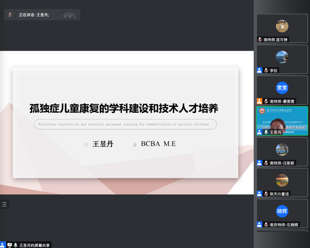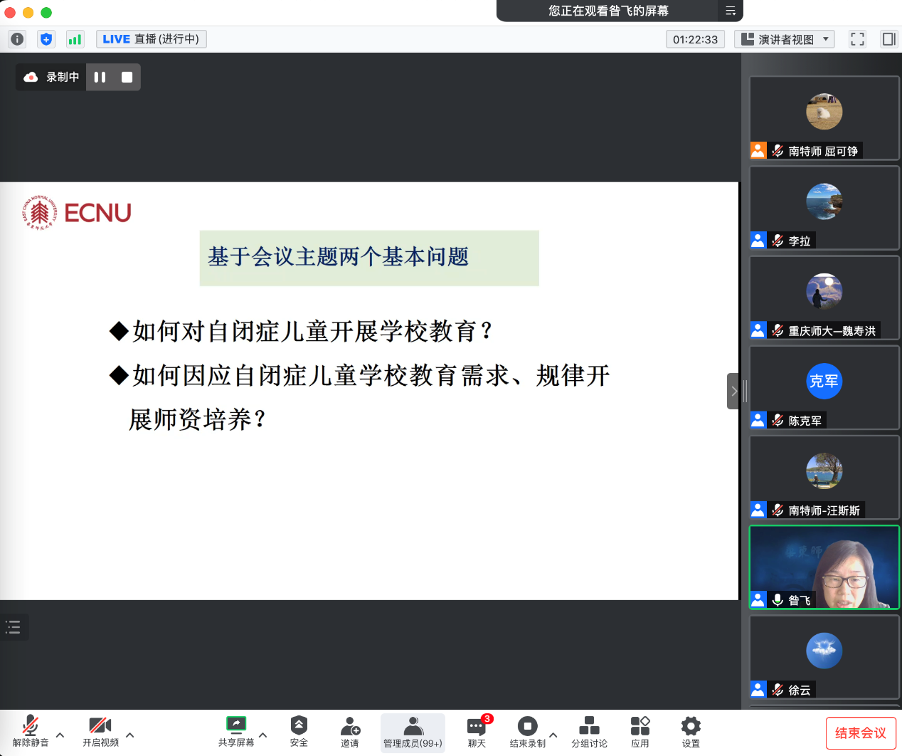 2022年7月9日,我校孤独症教育研究中心成功举办了为期一天的“首届孤独症教育学术论坛”。本次论坛邀请了来自浙江工业大学、华东师范大学、北京师范大学、重庆师范大学、香港地区、美国的知名专家学者以及基层学校的校长与教科研负责人,共10余名国内外顶尖的孤独症教育领域专家,共聚云端,围绕孤独症儿童教育与师资培养的主题展开研讨。线上参会人员突破六百余人,反响热烈。