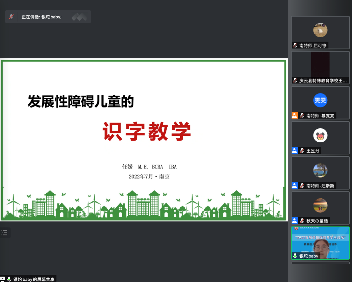深圳市南山区龙苑学校教科研负责人任媛老师分享了融合课堂中的孤独症学生识字教学策略,强调了识字教学对孤独症学生教育的重要意义,引发对于孤独症学生学校教育中学科教学的深入探究。