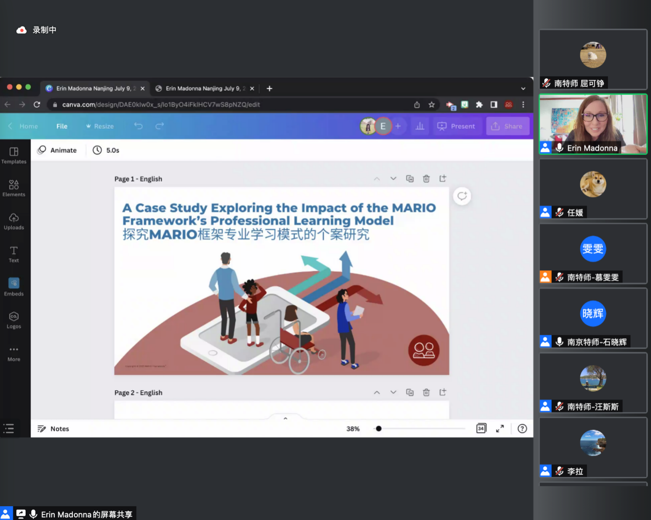 来自美国的Erin Madonna女士结合自身近20年的特殊教育领域的职业生涯成长历程,鼓励教师要“成为有研究意识的人”,倡导团队协同合作,强调倾听孤独症学生的声音、为学生赋权增能。我校孤独症教育研究中心的吴江文老师担任了翻译工作。