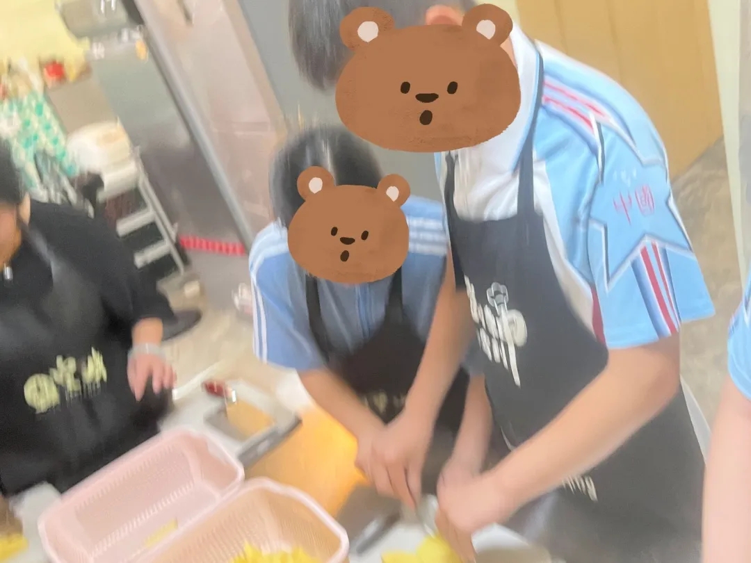 蔡老师向队长介绍班级同学的组成情况,总共6名同学,有1名同学是可以独立完成烹饪活动的,3名同学需要教师的辅助可以进行烹饪,剩余两名同学都需要在家长的辅助伴读下才能完成基本任务。队长跟随职教班级一起进行了洗菜、择菜、切菜以及炒菜工作,陪伴同学们一起学习烹饪技能和家务技能,并在适当时候帮助蔡老师一起辅助同学完成个人任务,随后中午陪伴同学们一起吃了一顿大家亲自动手做的午餐。