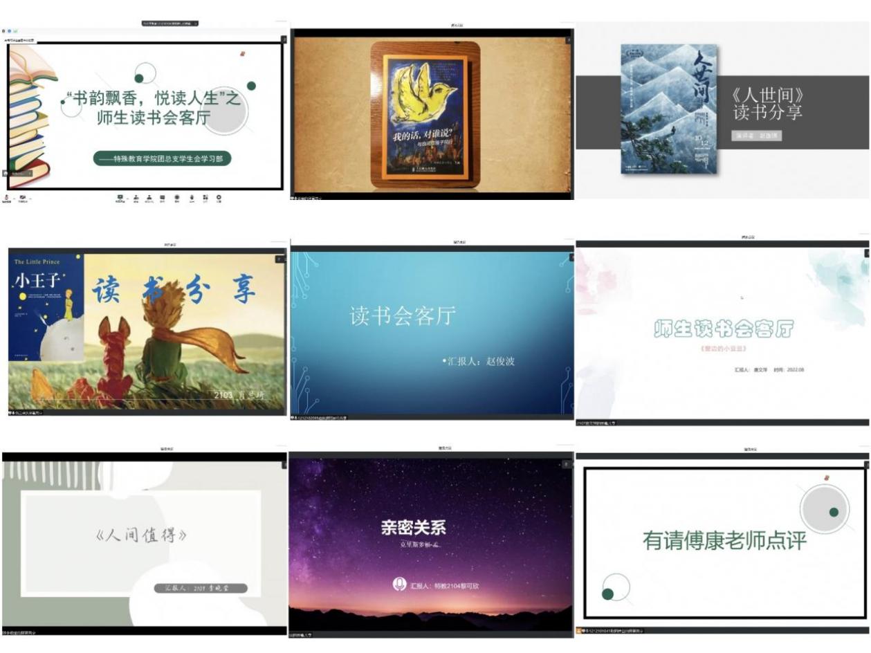 活动初始,主持人欧阳梓萱向参赛选手们介绍了本次活动的规则和汇报的注意事项。首先上台汇报的是徐楠同学,她分享的书籍是《我的话,对谁说?与自闭症孩子同行》。书中通过几个自闭症儿童家庭的故事,从他们的家长的独特视角出发,以真切易懂的语言向读者展现了自闭症儿童的治疗过程、成长过程。她分析了五位自闭症儿童的母亲们的想法,同时站在自己所学的特殊教育专业角度思考和呼吁:我们幸运地成为健全的人,但也要像书中的自闭症孩子的母亲们一样乐观,常怀希望,未来用自己的所学所悟更多地帮助特殊儿童。然后是赵珈琪同学的《人世间》,她向我们分享了自己的读书感悟:知识、观念见识可以改变命运,个人命运与时代和国家的命运紧紧相连,我们要不断学习,与时俱进,提升自我以应对外环境的变化,并让自己更好地得到长足发展;接着,是肖兰琦同学推荐的《小王子》一书,她介绍到自己出于童趣性、艺术性、可读性和哲理性向大家分享了此书,并向大家讲述了自己对生死、本真和驯服三种特质的见解,令人印象深刻。