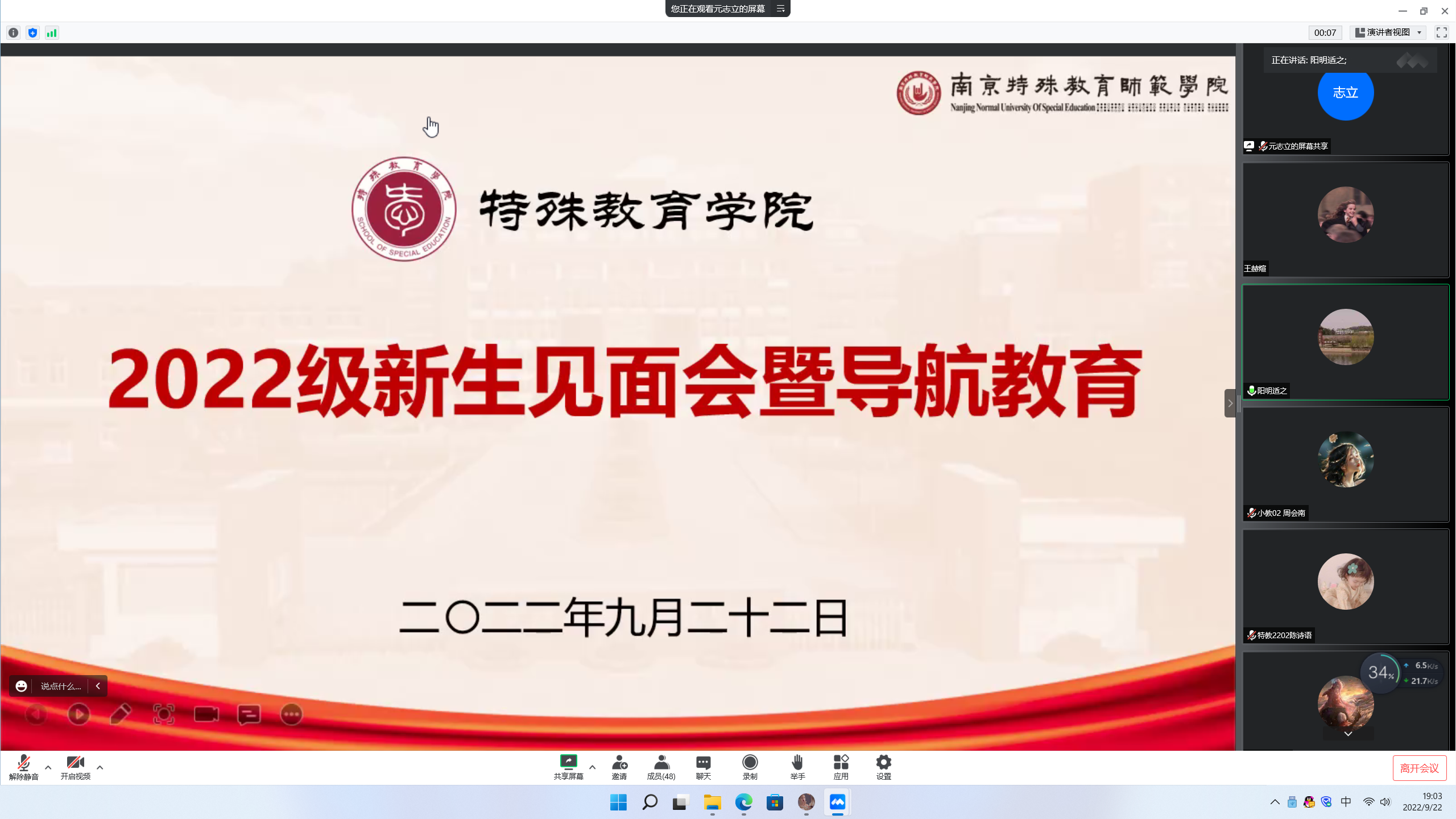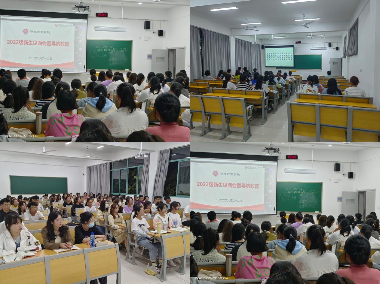 为增进2022级新生对所学专业的了解,更加明确学习目标、树立远大职业理想,永利yl23411集团于9月22日晚举办“2022级新生见面会暨导航教育”主题活动。学院党总支书记叶亮、院长李拉、副书记李鹏、副院长张伟锋、特殊教育系主任陈琳、小学教育系主任赵文超、手语翻译系主任韩梅及带班辅导员和班主任线上参加,2022级各班新生在江宁校区教室参加,会议由学工办副主任元志立主持。