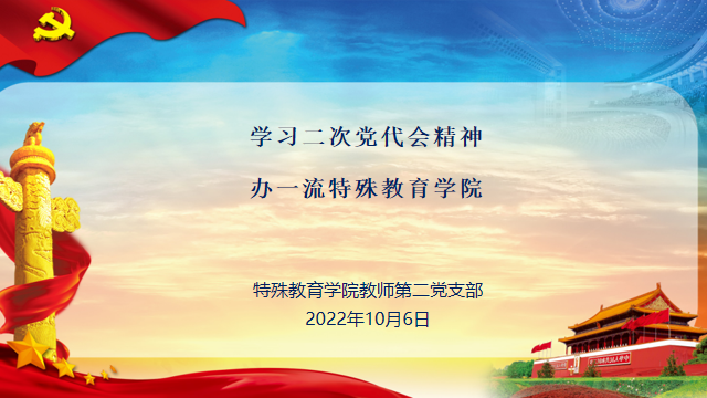 与会同志全面学习了二次党代会主要精神,并围绕党代会提出的“一二三四五”发展战略和八大提升工程,尤其是“办强特殊教育”的保障要求,结合个人工作实际进行了交流发言。党总支书记叶亮从办强特殊教育学科、专业和贡献三个方面,谈了如何搭建科研平台、引进领军人物、攻克重点项目,以期提高学院的知名度和服务水平,落实立德树人根本任务,弘扬博爱塑魂校训精神。吕吉同志、史玉凤同志、牟玉杰同志、熊琪同志、薛辉同志等党员先后发言,交流个人学习体会和对办好一流永利yl23411集团的的想法与建议。