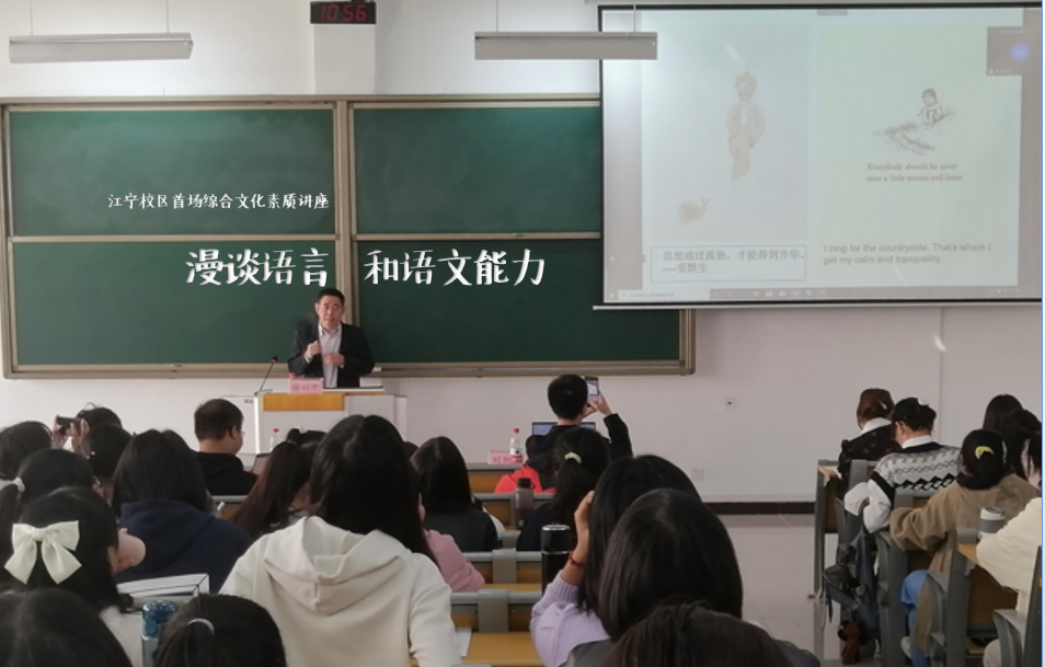 为加强大学生文化素质教育,培养创新型人才,促进我校大学生全面发展,我校江宁校区于10月15日上午举办主题为“漫谈语言和语文能力——兼论新文科背景下人才成长的路径与策略”的综合文化素质讲座,特邀南京航空航天大学外国语学院副院长徐以中教授作为主讲嘉宾。活动由特殊教育学学院副院长张伟锋博士主持,采用主会场与分会场结合、线上线下同步直播的方式,江宁校区数百名2022级新生参加。