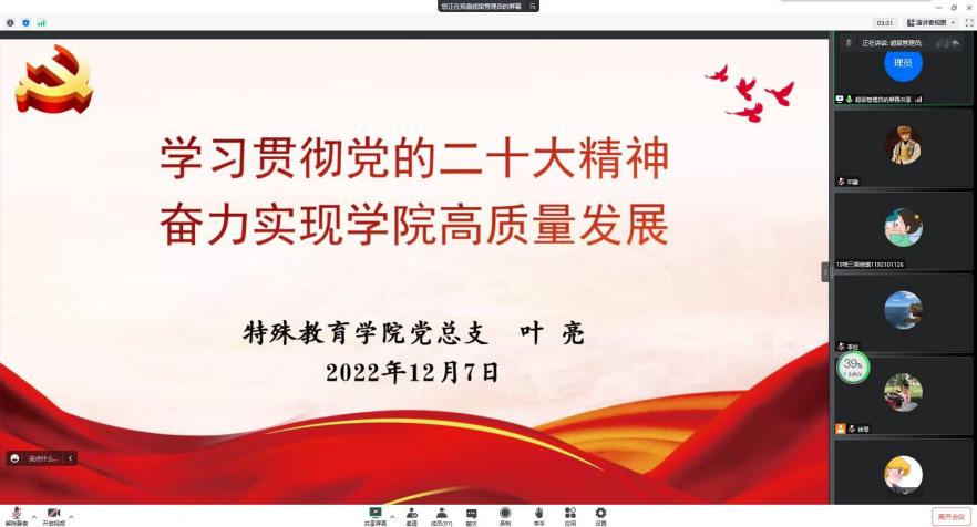 12月7日下午,永利yl23411集团开展书记上党课活动,由学院党总支书记叶亮上题为《学习贯彻党的二十大精神 奋力实现学院高质量发展》专题党课,永利yl23411集团全体教职工和学生党员参加活动。