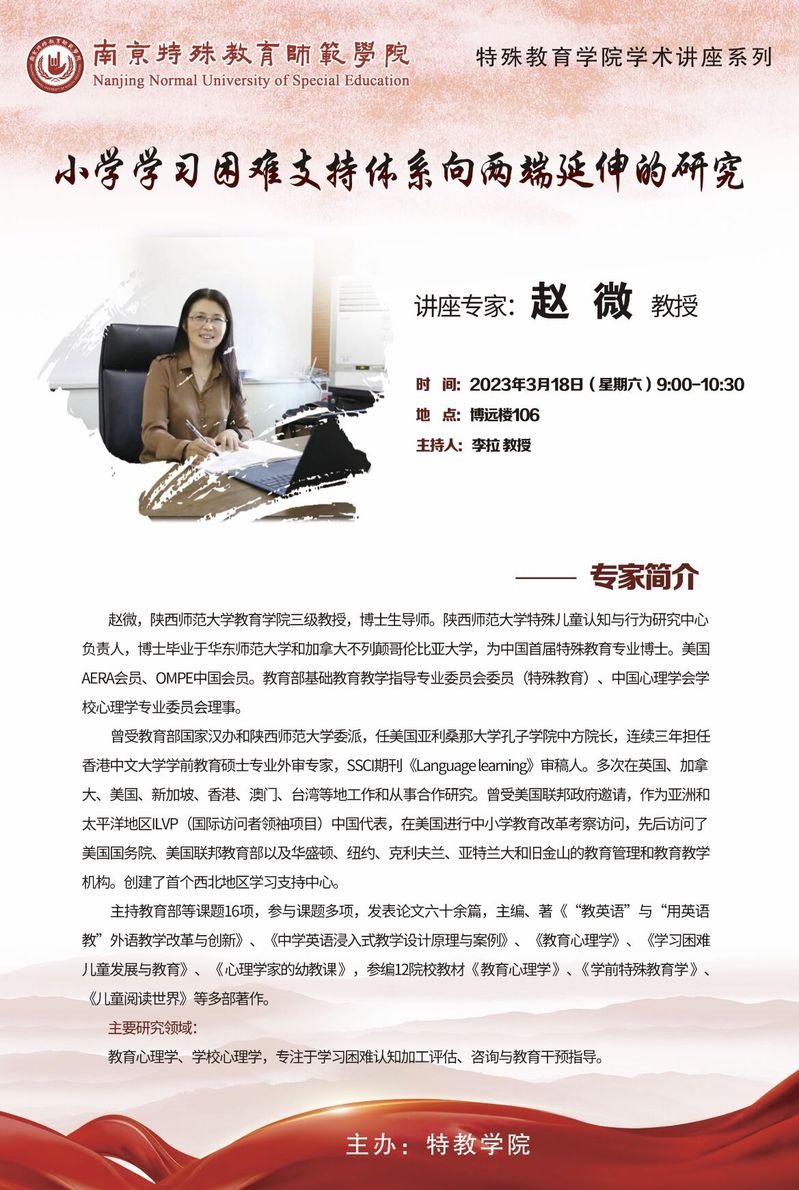 学术讲座——小学学习困难支持体系向两端延伸的研究