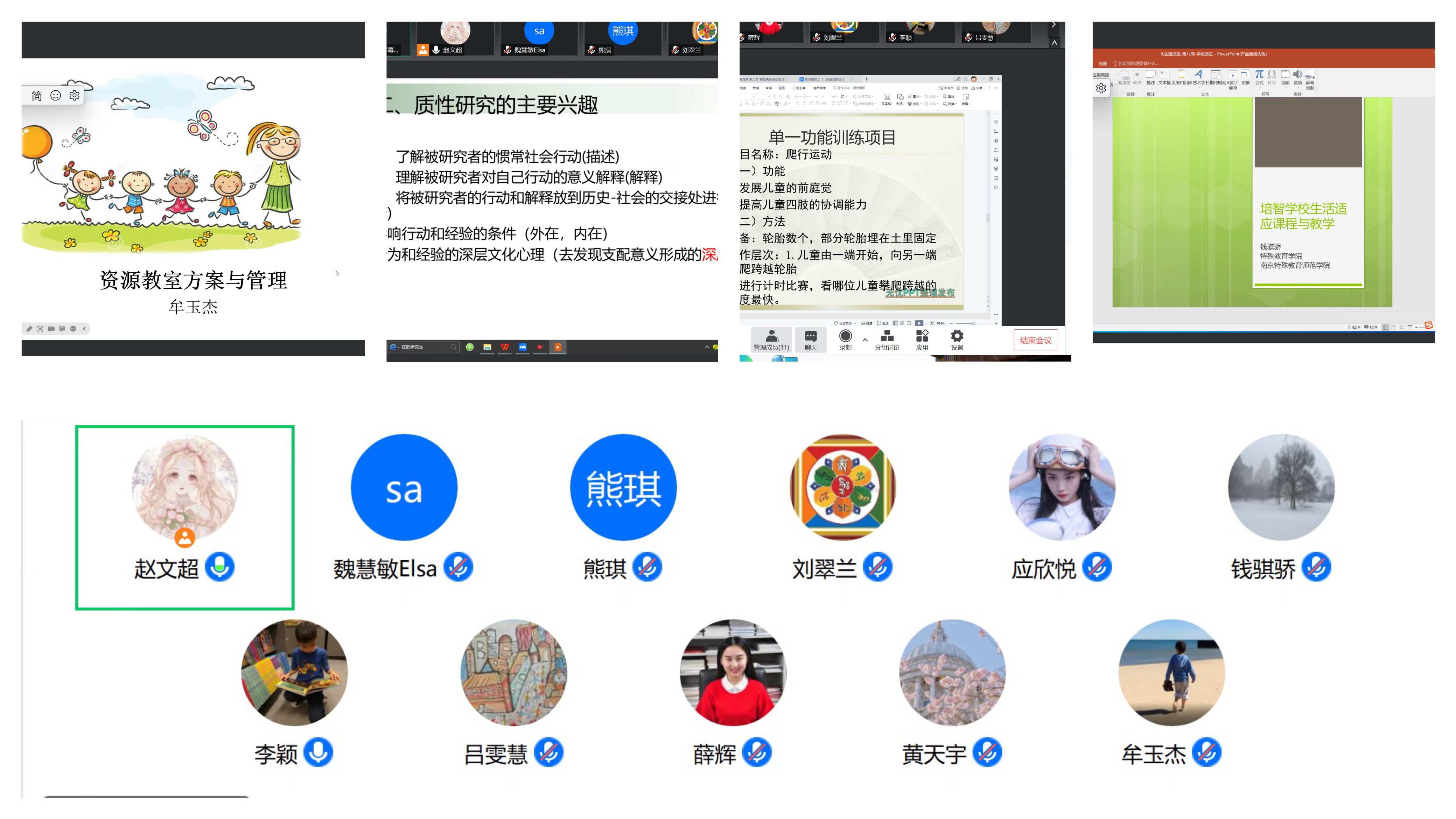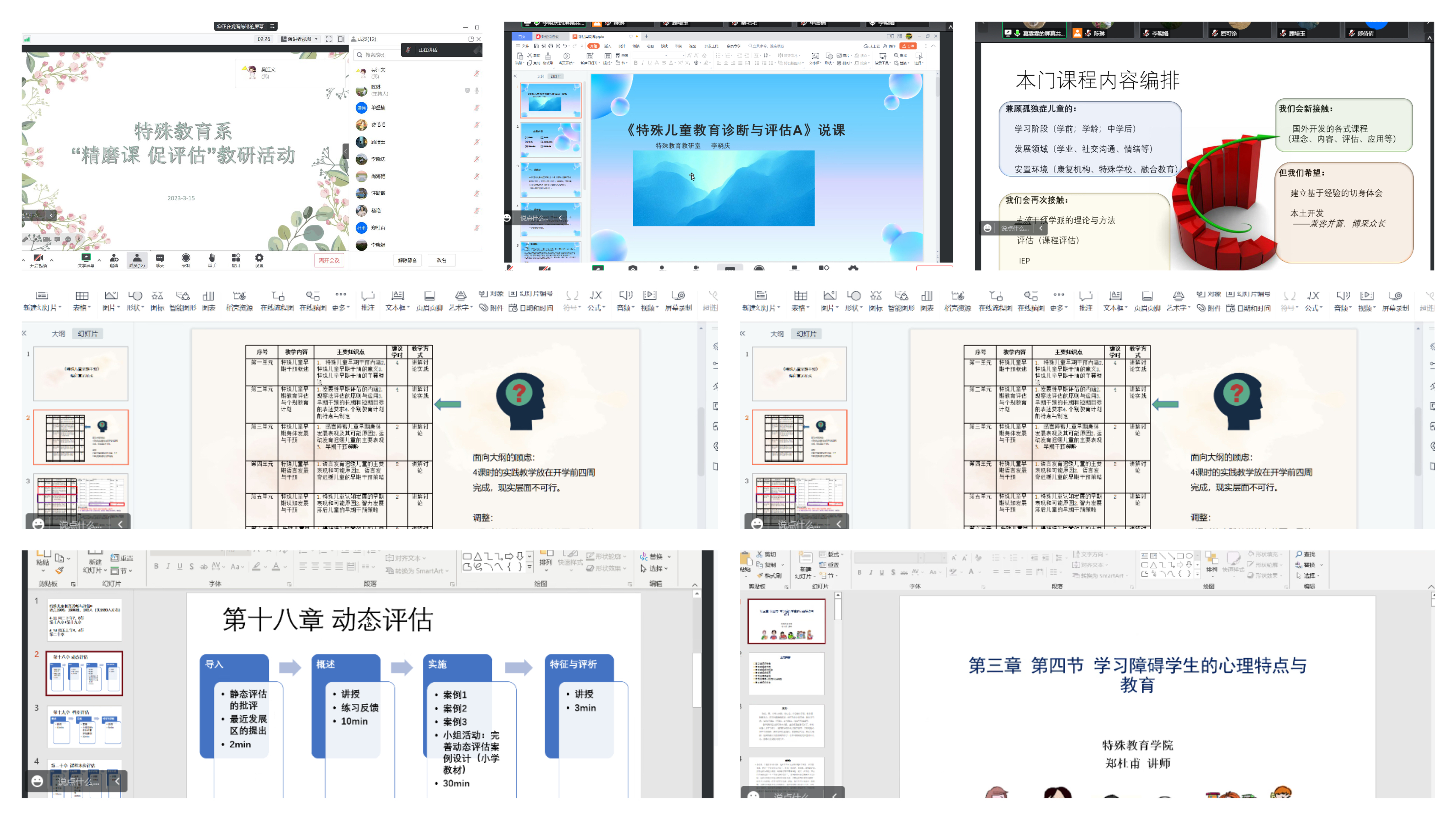 特殊教育系以线上方式开展磨课活动,教师借助PPT与教案,针对任教课程的教材、学情、教学内容、教学重难点、教学环节、教学方法等内容进行了逐一汇报,并提出自己在设计教学过程中遇到的困难与疑惑。在每位教师汇报后,学院督导和系里的资深教师都对其授课内容与方式给予细致的点评。总体来看提出以下建议:一、在教学环节设计方面把握好上课时间,准备好适当的课堂任务量;二、讲解理论知识的同时多辅以实际案例的补充,充实课堂内容;三、提醒新教师准确把握教学内容,在日常教学和生活中注意多积累上课素材;四、针对具体每位教师困难和疑惑提出针对性的建议。这次研磨课活动特别指导几位新教师,对她们的授课方案、教法、课程内容设计等方面进行细致指导,使几位新教师对于上好课有了更多的底气和更充足的准备。说课结束后,陈琳主任对本次说课活动进行总结,并部署了第二次磨课活动——试讲活动进行的时间与内容,期待老师们在试讲活动中的精彩表现。