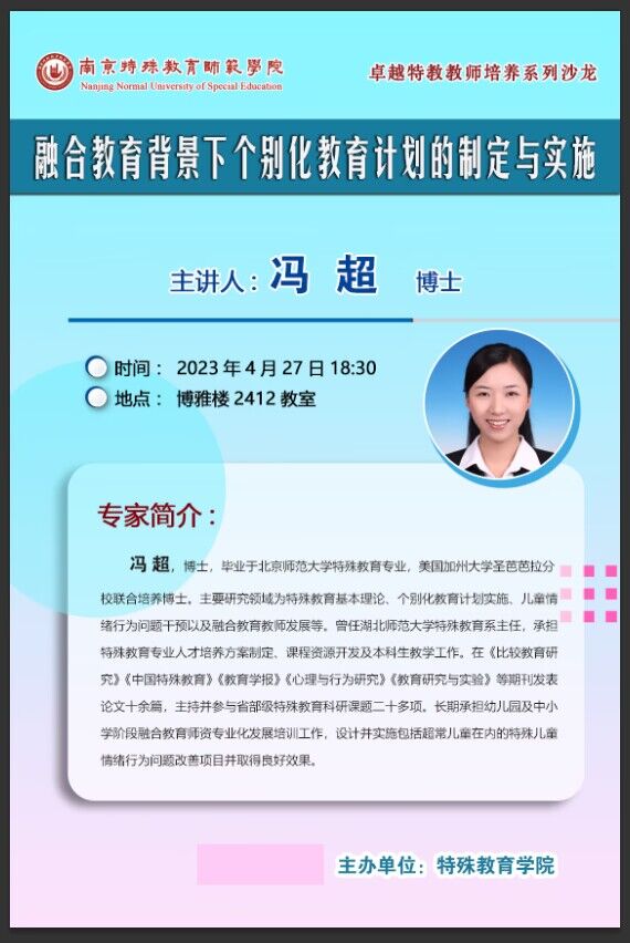 卓越特教教师培养系列沙龙——融合教育背景下个别化教育计划的制定与实施