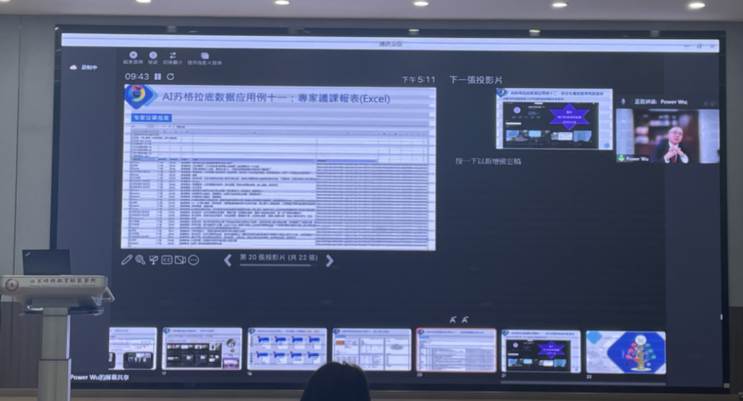 最后,吴权威教授带来《培育未来好老师,改变世界的力量》专题分享,他强调现代教育理念,融合信息技术,从“深度融合理念(TPC)+智慧教学系统(醍摩豆)+AI教练辅助教师专业”三个要素进行阐述。
