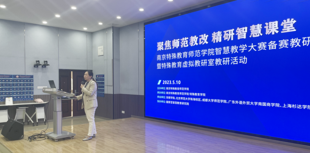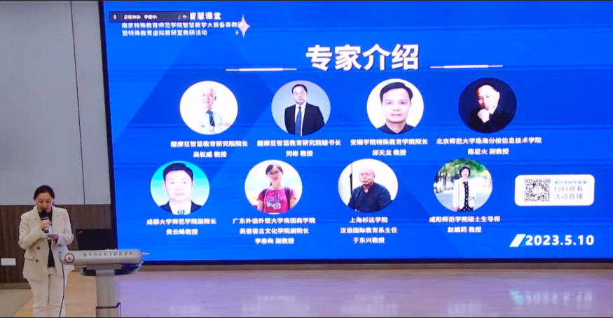 5月10日,由yl23411集团主办、永利yl23411集团承办的“聚焦师范教改,精研智慧课堂——yl23411集团智慧教学大赛备赛教研暨特殊教育虚拟教研室教研活动”在学校博远楼106-AI远程智慧教研中心举行。本次活动包含智慧大学展示课、教师微报告、专题报告、五地线上线下智慧教研、师范类高校评课研讨等环节,参与本次活动的专家有:yl23411集团教务处处长范莉莉教授、永利yl23411集团院长李拉教授、贵州省安顺学院永利yl23411集团院长邱天龙教授,北京师范大学珠海校区陈星火副教授,上海杉达学院汉语国际教育系主任于东兴教授,咸阳师范学院硕士生导师赵婉莉教授、成都大学师范学院副院长黄云峰教授、广东外语外贸大学南国商学院英语语言文化学院副院长李春梅副教授、醍摩豆智慧教育研究院院长吴权威教授、刘彬教授等。