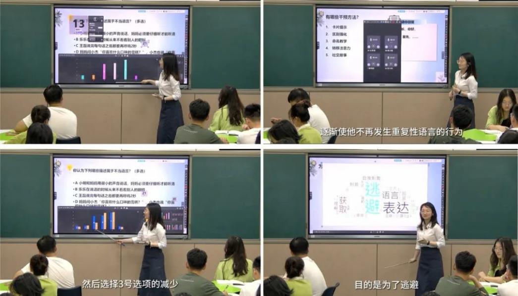 安顺学院永利yl23411集团院长邱天龙教授,北京师范大学珠海校区陈星火教授,上海杉达学院汉语国际教育系主任于东兴教授对本节课进行专业点评。邱天龙教授基于特教专业进行总结提炼,他表示本节课教学内容从自闭症儿童影响到干预,整堂课逻辑清晰,联系紧密,层次感强,智慧教室的使用让学生获取知识快捷,回复家长来信板块设计新颖。