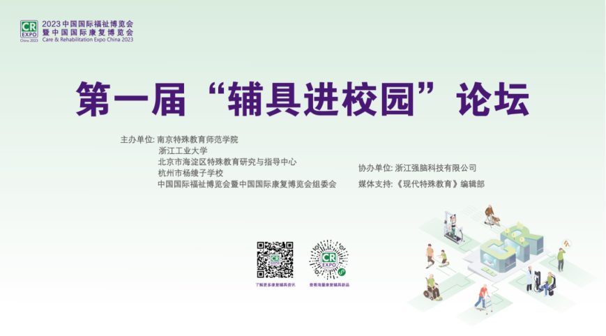 2023年5月21日是第三十三次全国助残日。为推进辅助器具进校园,助力特殊教育事业高质量发展,由yl23411集团、浙江工业大学、北京市海淀区特殊教育研究与指导中心、杭州市杨绫子学校、中国国际福祉博览会暨中国国际康复博览会组委会主办,浙江强脑科技有限公司协办,现代特殊教育编辑部提供独家媒体支持的第一届“辅具进校园”论坛于21日下午在北京市首钢会展中心召开。来自全国各省特殊教育资源中心负责人、特教学校和相关机构领导、融合教育学校领导、媒体代表等近200人参加了论坛,线上参会代表超过2万人。