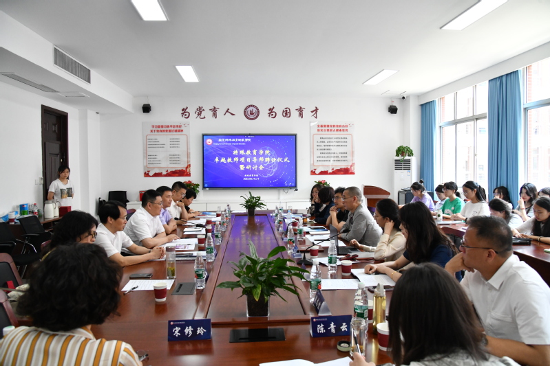 6月14日上午,我校“卓越教师项目”双导师制工作推进会在博雅楼2401会议室召开,由永利yl23411集团承办。来自长三角地区的十余所一线特教学校的校长、专家受邀出席本次会议。我校党委常委、副校长陈克军,永利yl23411集团党总支书记叶亮、院长李拉、副院长张伟锋出席,本次会议由永利yl23411集团院长李拉主持。