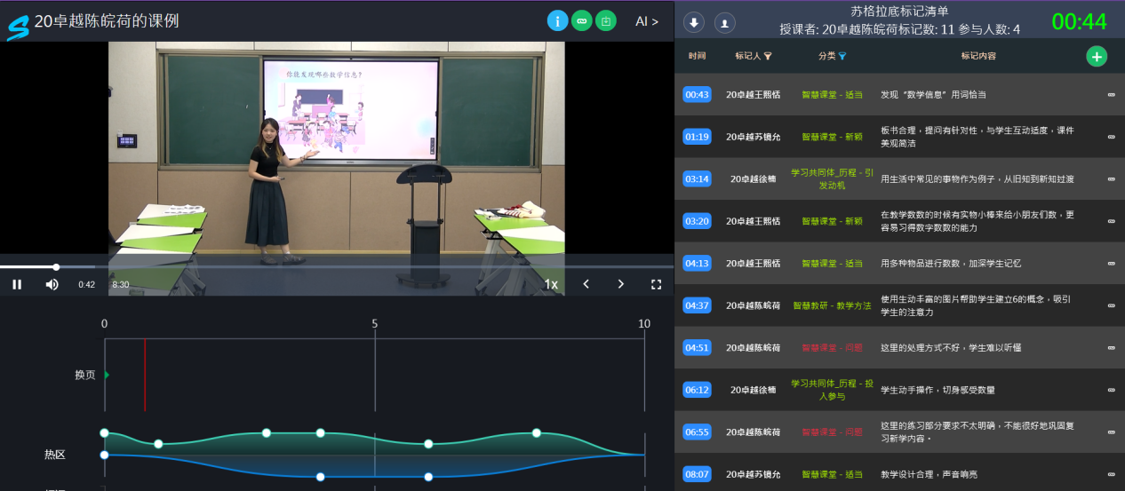 智慧教学研习。为提高学生智慧教学实操能力及智慧平台使用能力,2020级卓越班毕业生利用学校智慧教学中心、智慧教学平台HiTA5软件等进行智慧教学实训,并相互点评,促进师范生信息化素养的共同进步。培智2班部分同学在智慧教室集体研讨,模拟授课,帮助彼此分析优点与不足,相互学习。