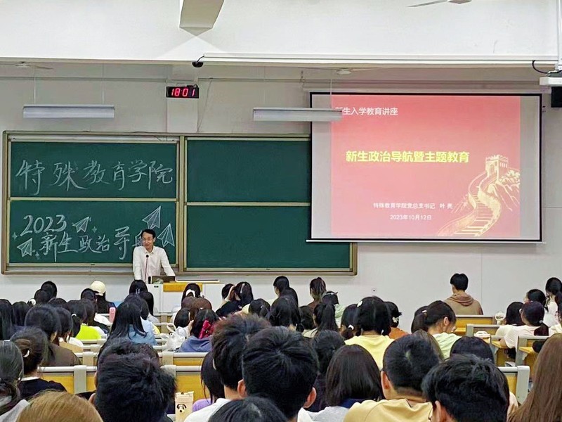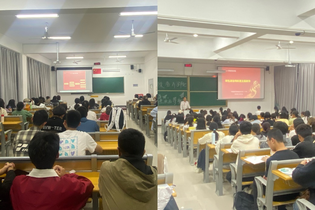 为帮助2023级新生更好地适应大学生活,引领青年学生提高政治素养、坚定理想信念,10月12日晚,永利yl23411集团党总支书记叶亮老师在江宁校区为全体新生开展了一场政治导航暨主题教育。永利yl23411集团2023级全体新生在C201主会场和D204分会场聆听讲座,会议由带班辅导员傅康老师主持。