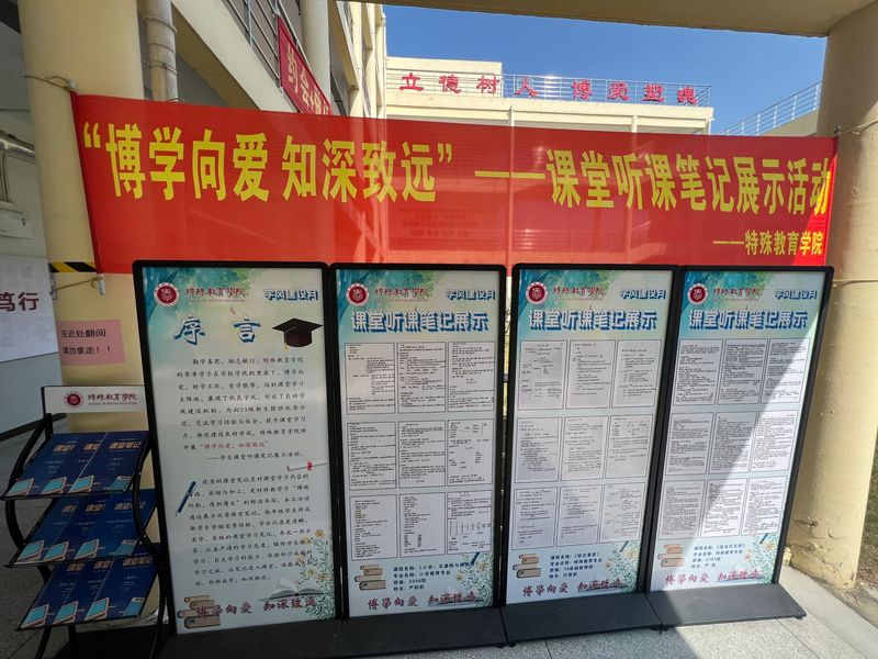 优秀的课堂笔记是对特教学子“博观约取,厚积薄发”的鲜活书写。此次活动总共分为三个部分:向全体新生展示优秀笔记内容;各班级以班级为单位组织观看优秀笔记;各班学生代表在班级分享学习心得。